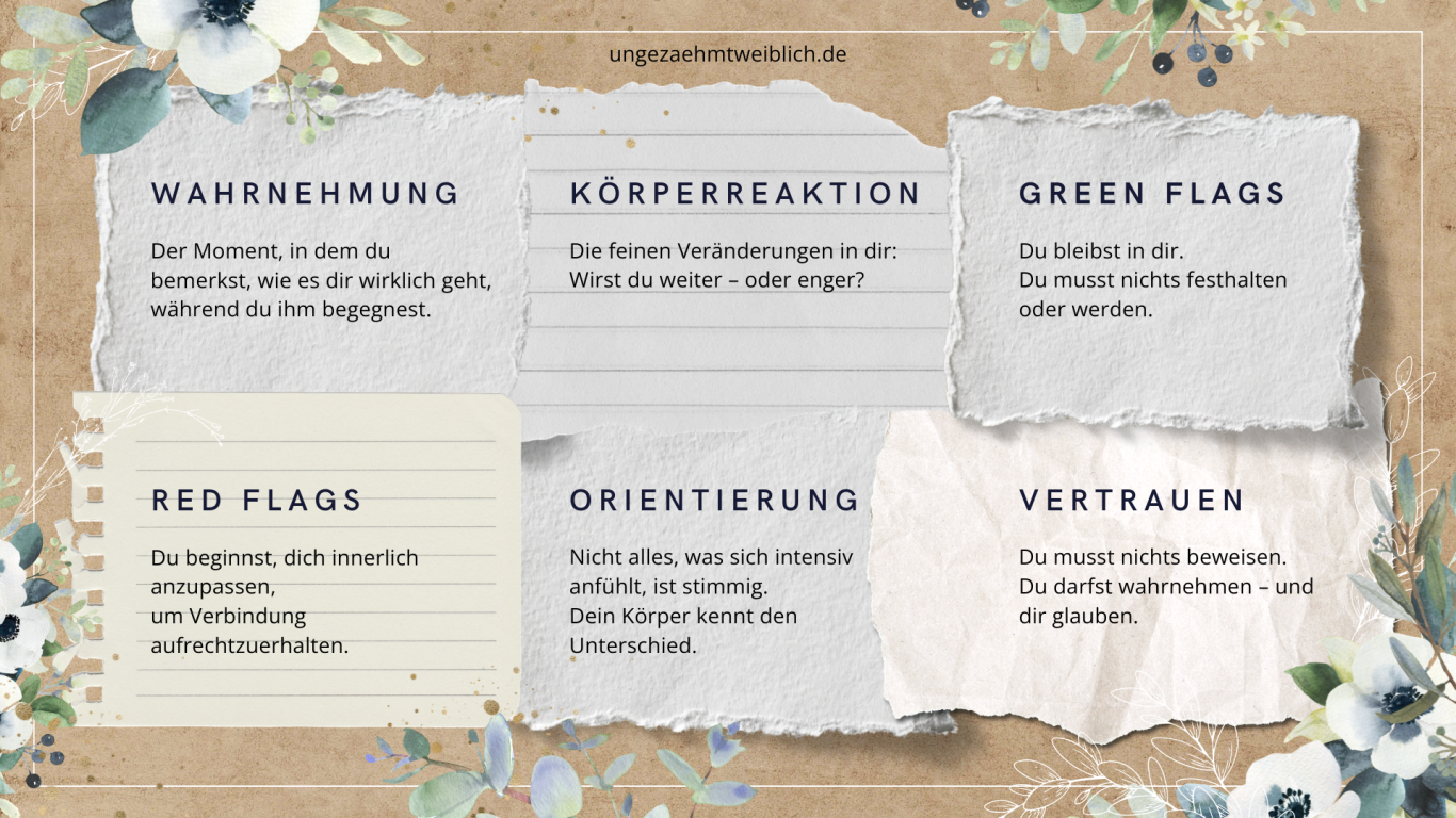 In den kleinen Momenten während einer Begegnung. In der Art, wie dein Körper reagiert, noch bevor du eine klare Meinung hast. Ob du ruhig bleibst oder wach wirst. Ob du dich öffnen kannst oder dich unmerklich zusammenziehst. Ob du einfach da bist – oder beginnst, dich innerlich auszurichten.